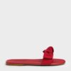 These Anika slide sandals in red are made with faux suede and feature knot-bow embellishments, gently rounded toes, and thin flat soles. Wear them on slow afternoons when you want to feel comfortable and look chic.Suede shoes require special care. For cleaning tips, please refer to our detailed guide here.
