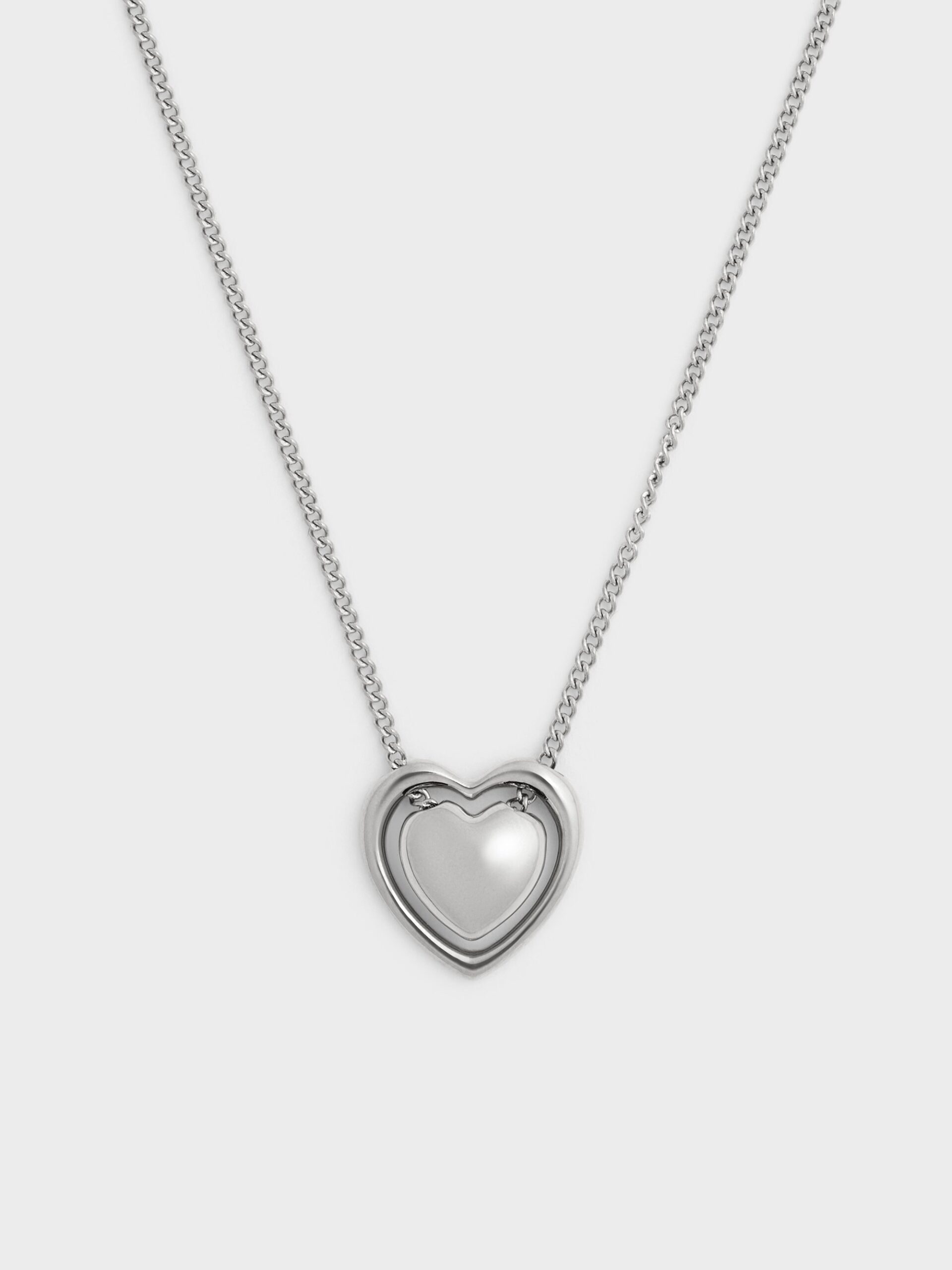 This Annalise necklace in silver features a double-heart pendant and a delicate adjustable chain. Pair it with other cool-toned accessories — this piece will introduce understated charm and romantic sophistication to your daily style rotation.