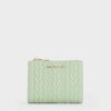 This Apolline wallet in soft pink features a textured finish embossed with a beautiful weave pattern, a zippered coin compartment, a compact bi-fold design and a snap-button closure. It will keep your valuables secure and organised.