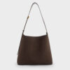This Arlet top handle bag in cream features boxy construction and a belted strap with a metallic buckle. Pair it with satin trousers and sculpted tops for a look that is striking and feminine.