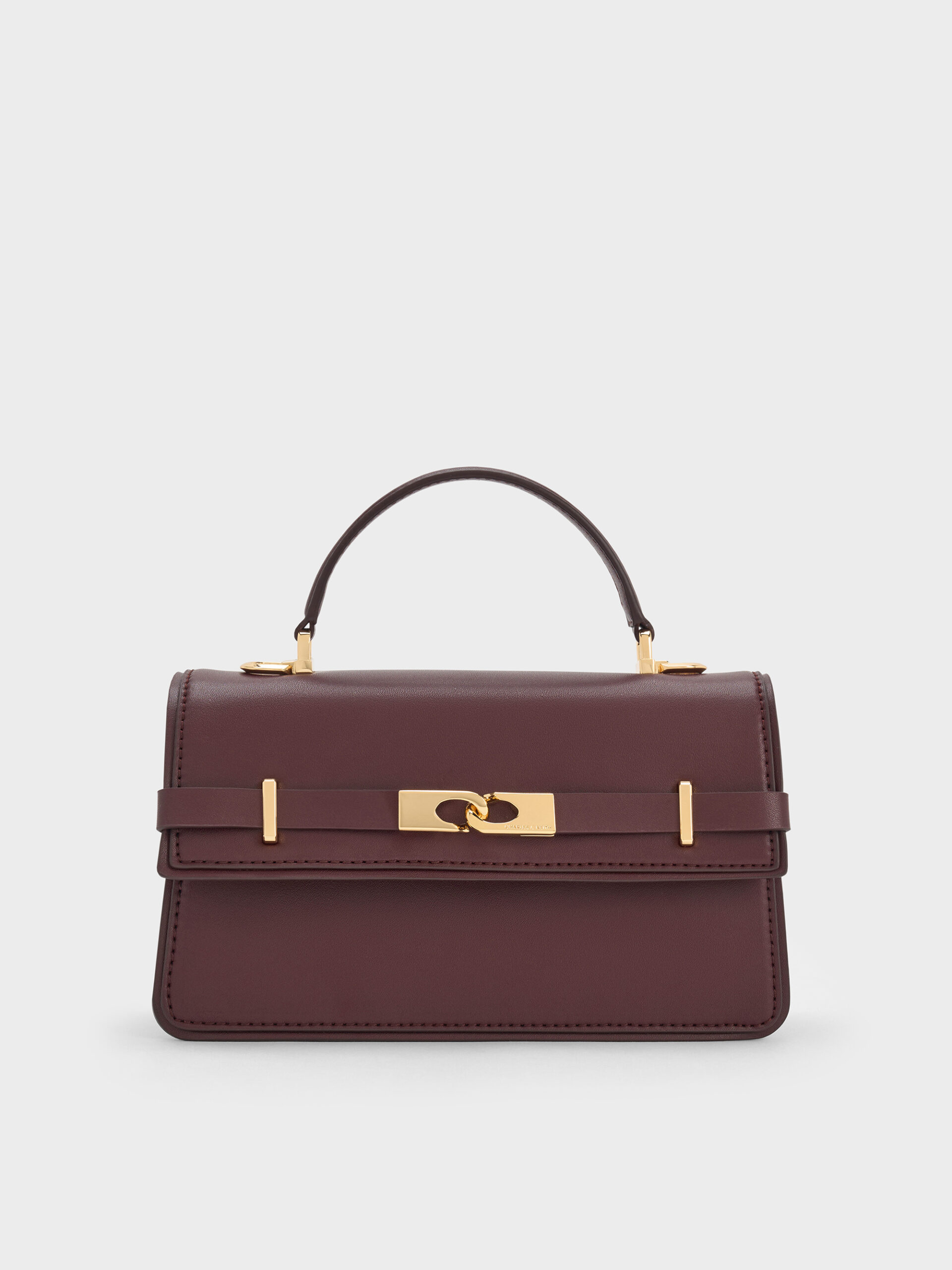 This Arlet top handle bag in red features boxy construction and a belted strap with a metallic buckle. Use it to lend edge and definition to soft tailoring or add an eye-catching element to neutral ensembles.