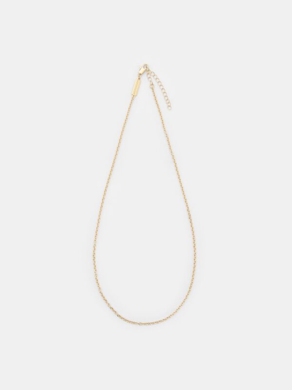 This Arleth necklace in gold consists of a single delicate chain — its length can be adjusted. It is a classic and timeless piece that will elevate any outfit with subtle shine. Wear it on its own or layered with other necklaces.