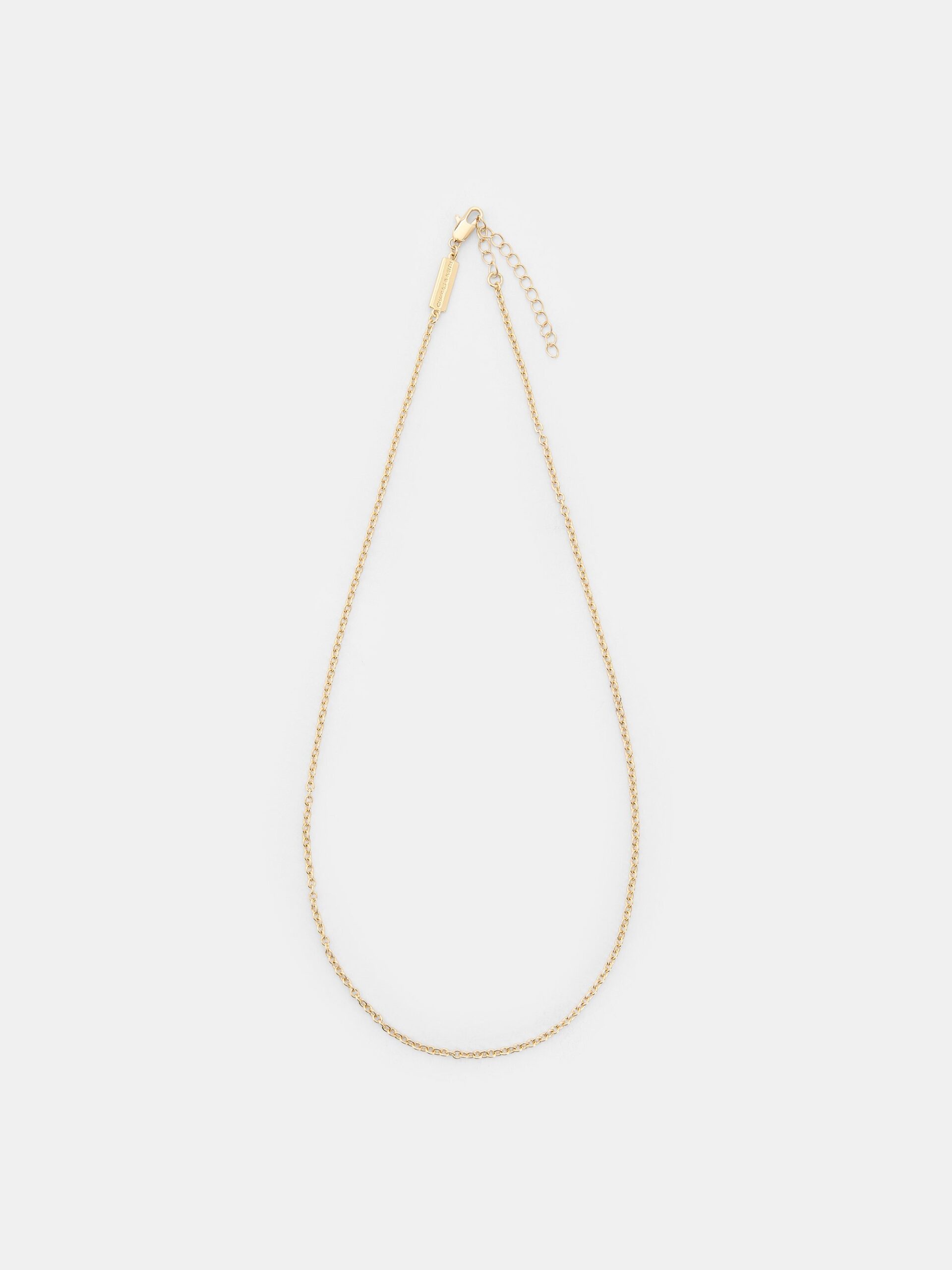 This Arleth necklace in gold consists of a single delicate chain — its length can be adjusted. It is a classic and timeless piece that will elevate any outfit with subtle shine. Wear it on its own or layered with other necklaces.