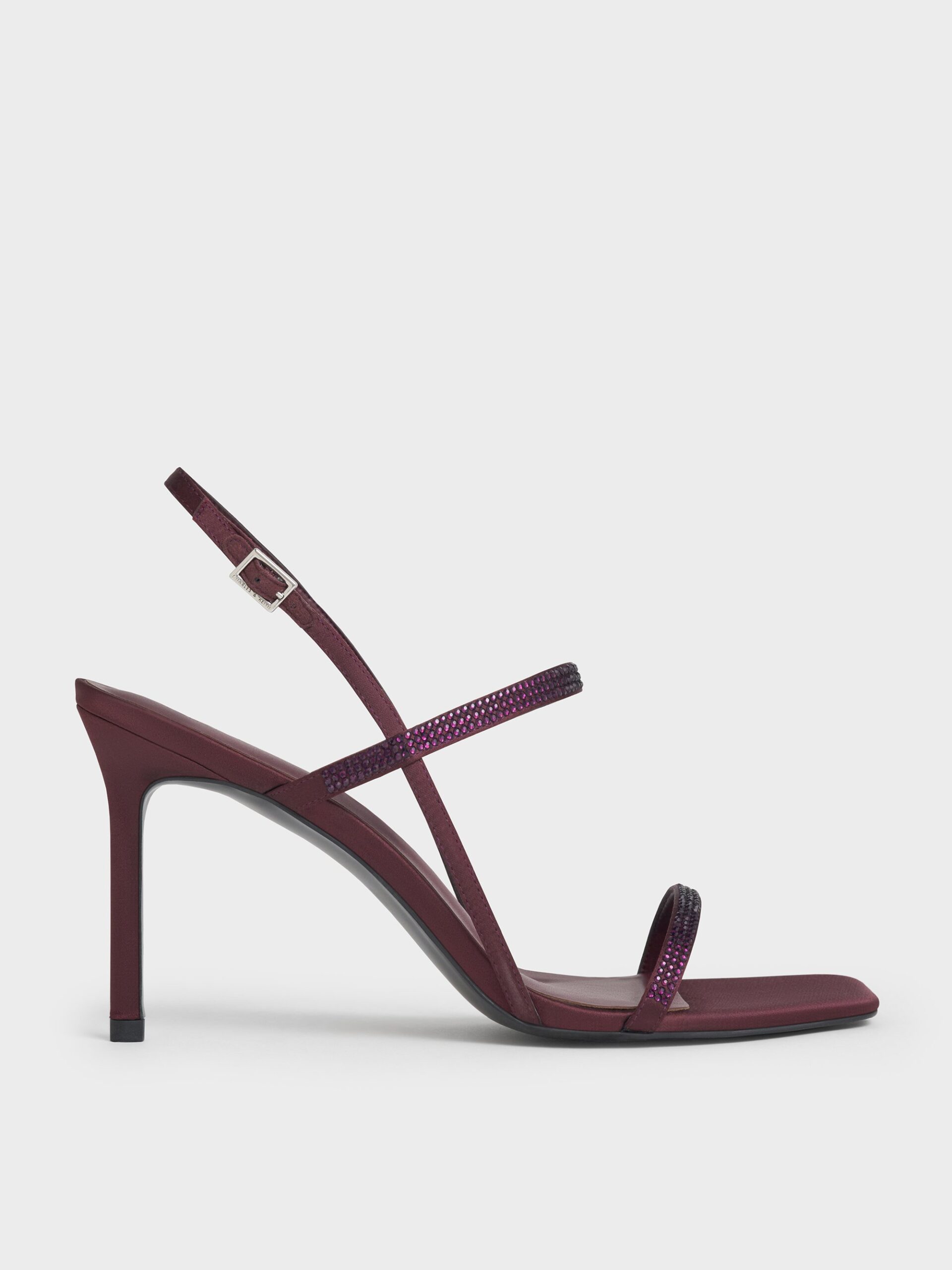 Equal parts feminine and sophisticated, these Arona heels in burgundy are perfect for dinner dates and parties. Sitting on sharp stiletto heels, these minimalist shoes are complemented by sparkling crystals that will elevate your look with added sparkle.