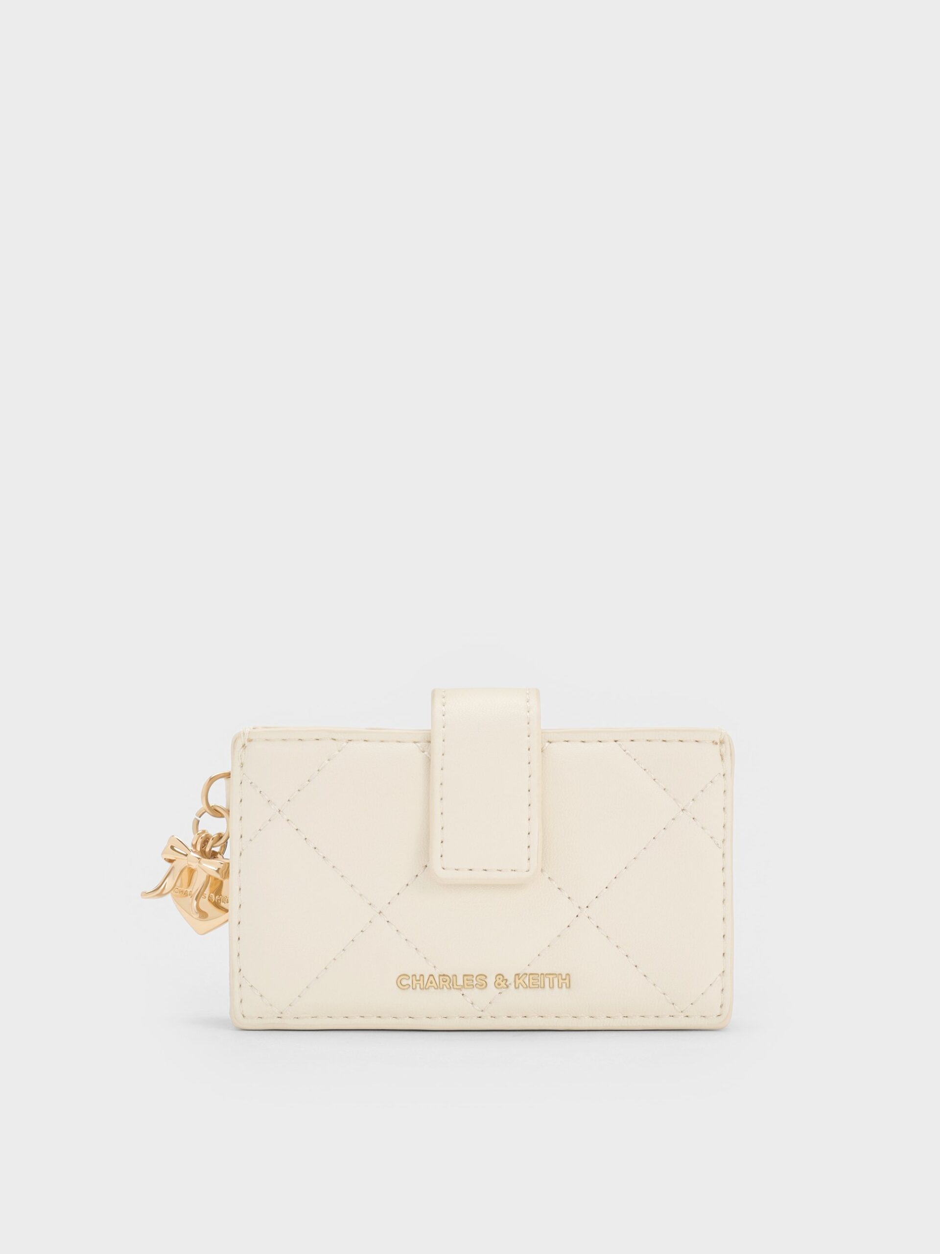 This Arrietty card holder in cream features a quilted finish, charming bow and heart charms and a magnetic belted closure. Use it to bring a sophisticated texture and stylish functionality to your everyday routines.