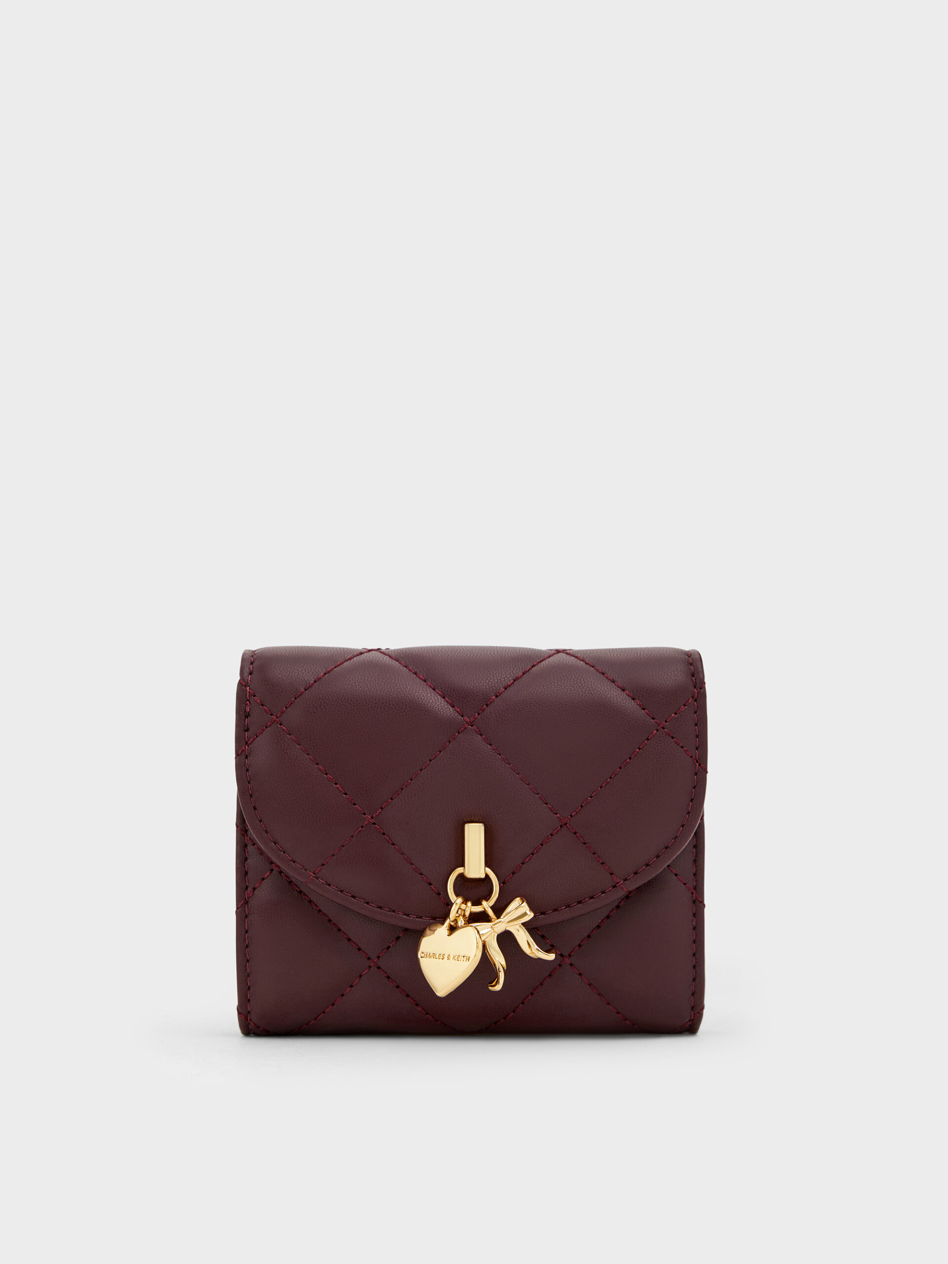 This Arrietty wallet in wineberry red features a quilted finish, shiny heart and bow charms, a curved front flap and a magnetic closure. Pop it into your go-to carrier to add rich colour and polished details to your daily life.