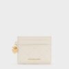 This Arrietty card holder in light pink features a quilted finish, shiny heart and bow charms, and a compact construction. It will elevate your work days with its practical design and stylish details.