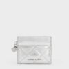 This Arrietty card holder in black features a quilted finish, shiny heart and bow charms, and a compact construction. Carry it with you to uplift your daily routine with elegant practicality.