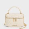 This Arwen vanity bag in mint green features a plush quilted finish, softly structured silhouette, a top handle and a two-way zip-around closure. Carry it as an evening bag to complete your special-occasion outfits.