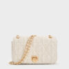 This Arwen shoulder bag in black is made with tweed and features a diamond-quilt finish and a braided chain strap. Pair it with pleated skirts and lightweight blazers to create smart looks that are versatile enough for both the boardroom and a dinner date.