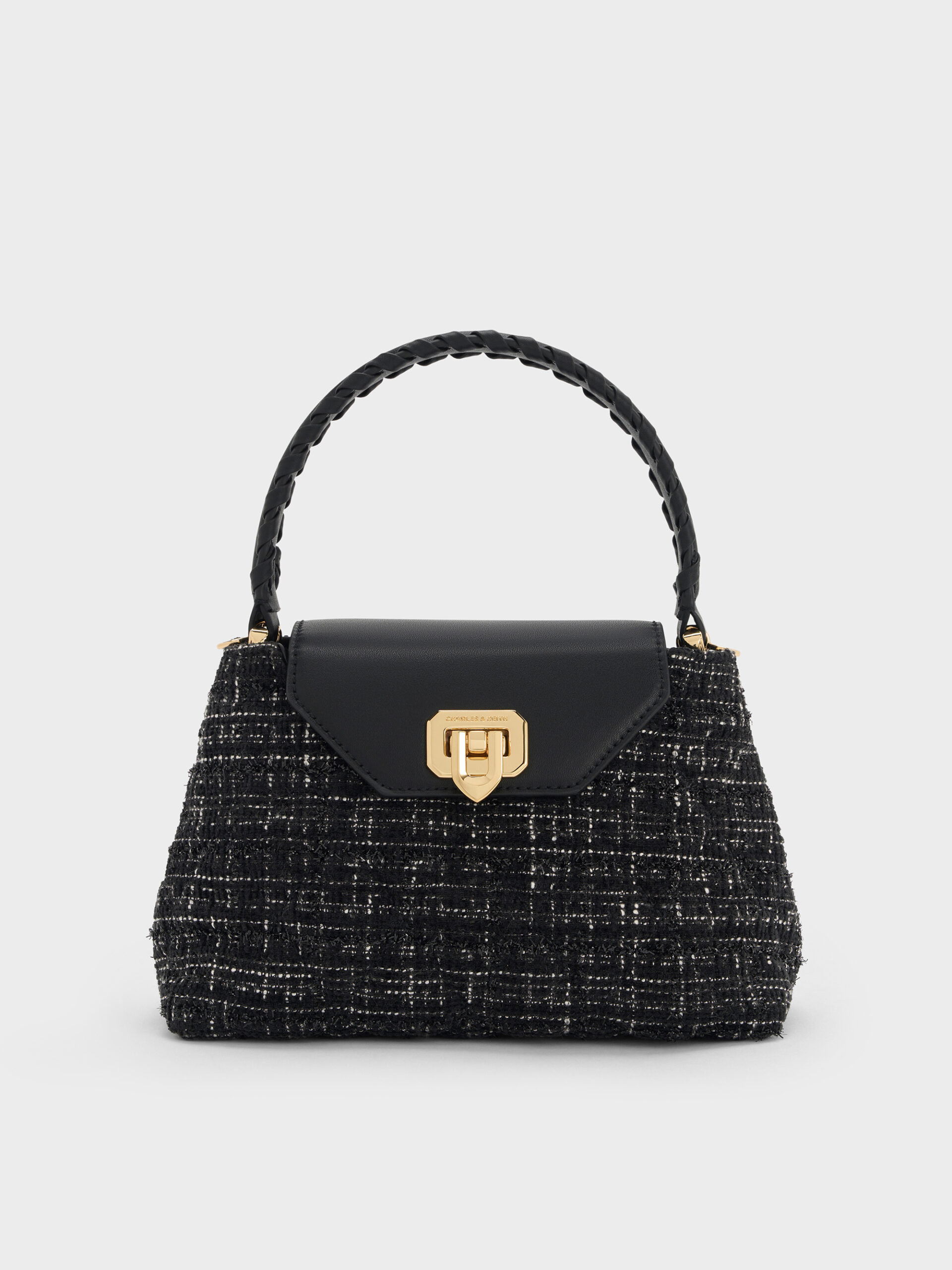 This Arwen top handle bag in black is made with tweed and features a quilted finish, along with a braided top handle and chain strap. Style them with minimalist shift dresses to bring a refined polish that�s suited to professional settings and relaxed after-hours gatherings alike.