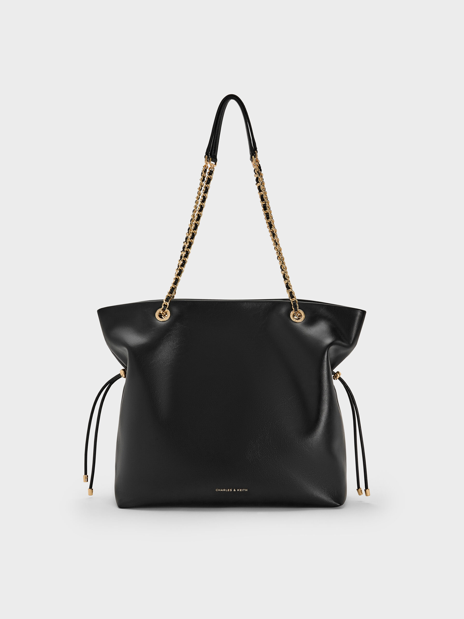 Featuring gold-tone braided-chain handles, this black Arya tote bag is a sleek carryall that will inject a subtle glamour into your everyday routine. Cinch the drawstring details at its sides to create a distinctive shape or let them out if you need more storage space.