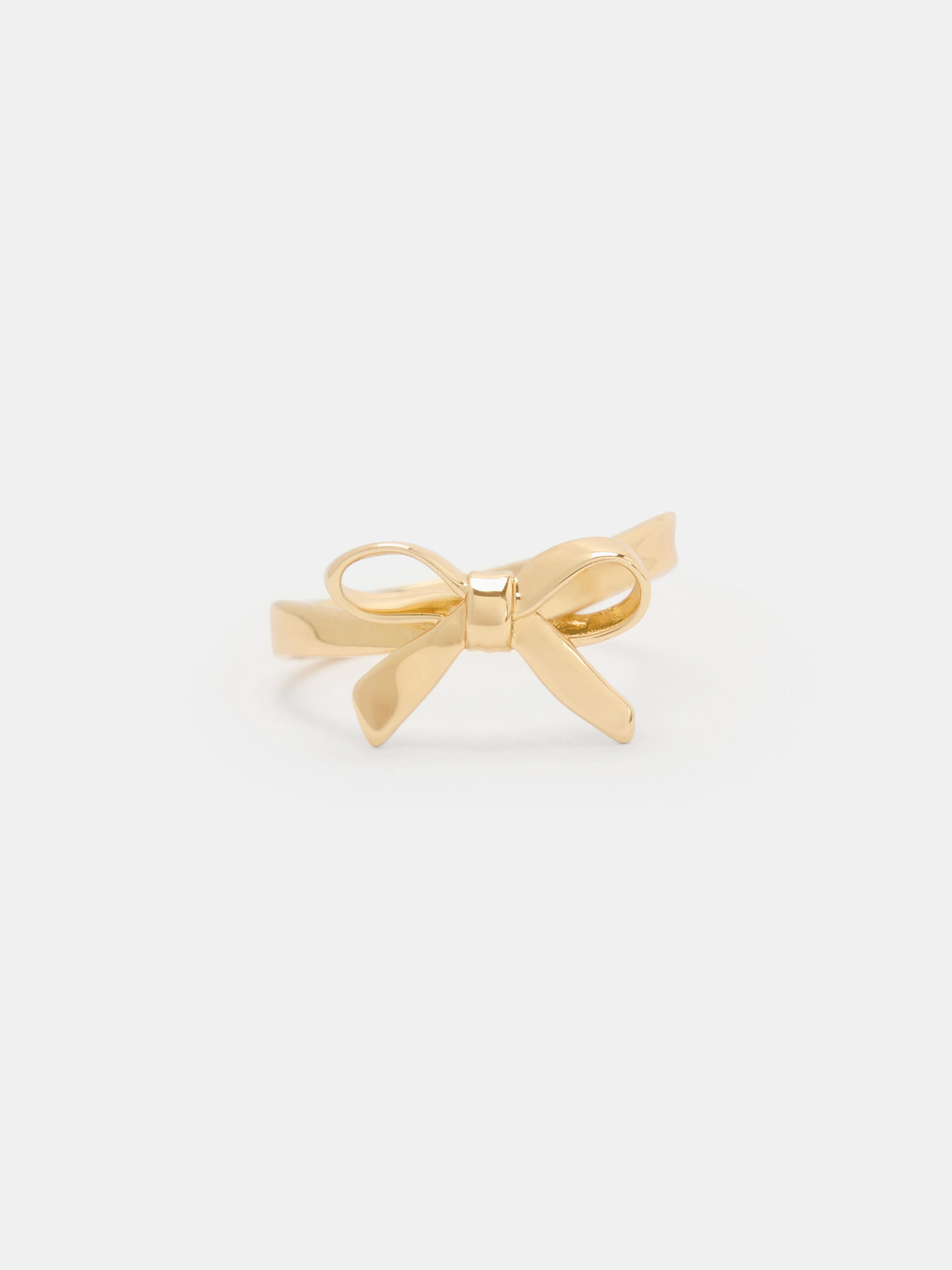 This Athalia ring in gold features a sculptural bow and a polished minimalist design. Wear it to bring feminine charm and elegance to your everyday looks all through the year.