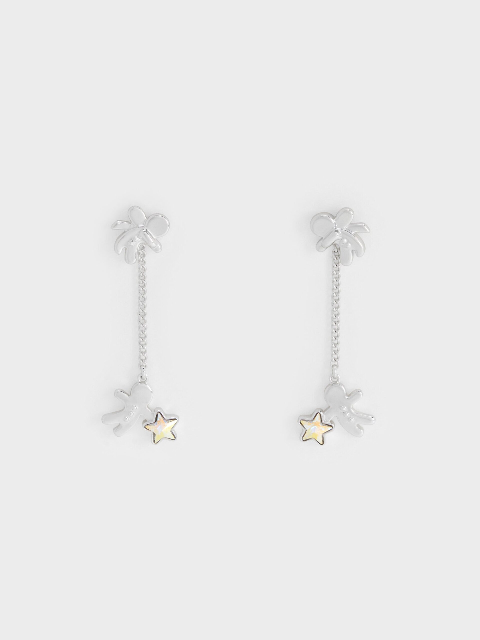 These Athalia earrings in silver feature gingerbread-fairy motifs, crystal stars and a chain-drop design. Let them bring whimsical sparkle and feminine refinement to your seasonal accessories collection.