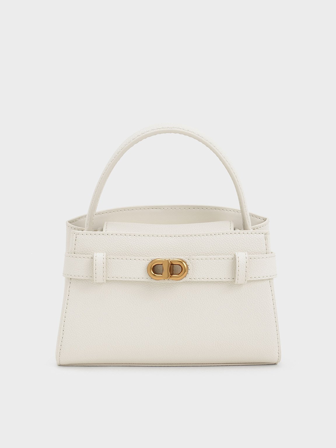 Add a dose of elegance to your outfits with our Aubrielle cream top handle bag. Featuring gilded hardware by way of the metallic buckle strap, you can count on this small-sized yet spacious bag as your trusty fashion companion. Carry it by its handle or sling the detachable bag strap across your shoulder. The perfect addition to your ever-expanding collection of new neutrals, pair it with a crochet dress and tubular mules for a simple yet sophisticated weekend look.