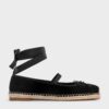 Embroidered with cheerful daisies, this pair of espadrille ballet flats is a conversation starter that you will want to wear all summer long. Featuring feminine tie-around ankle straps, their woven soles and mesh uppers come together to create a standout design.