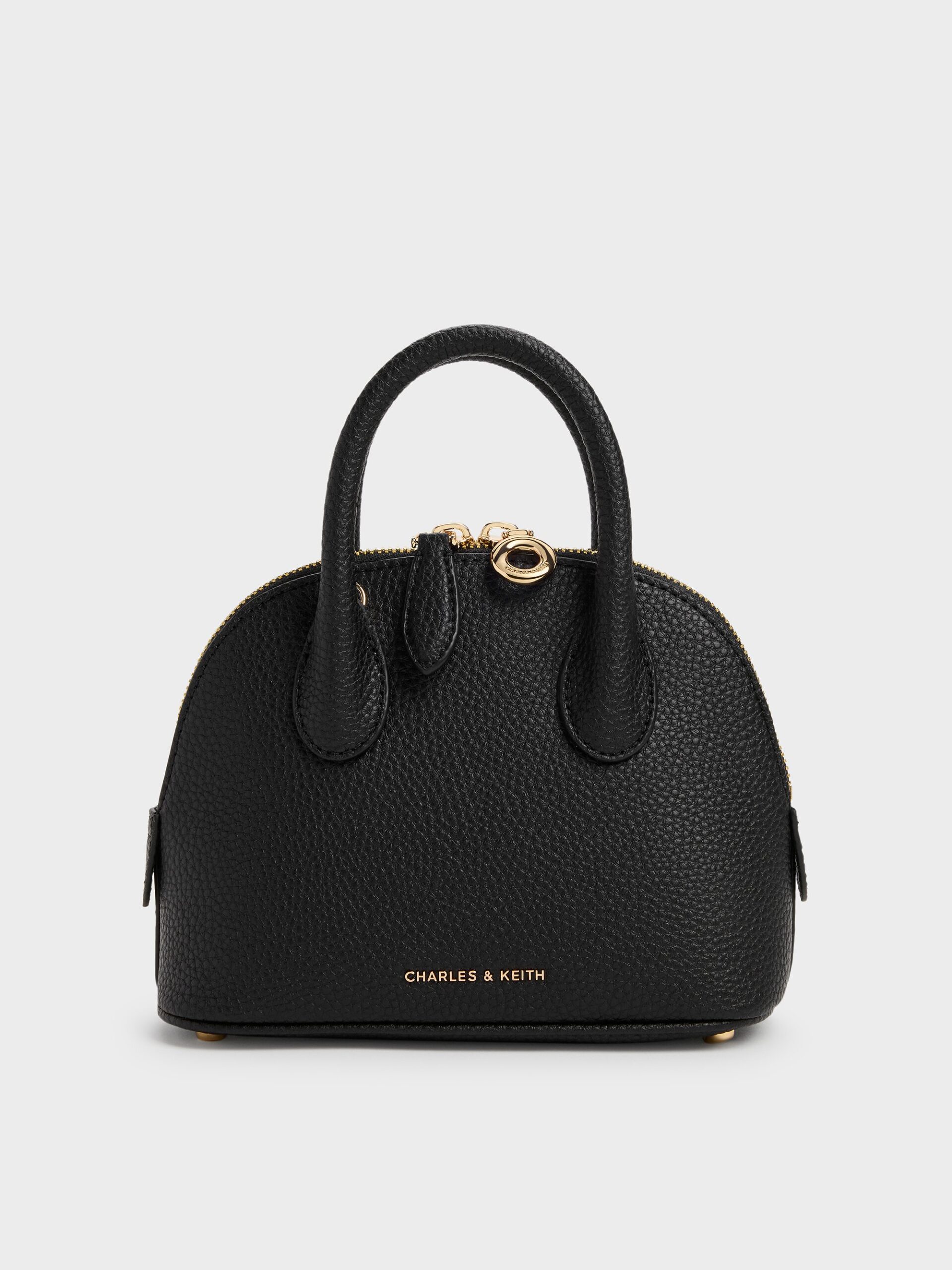 This Beryl bowling bag in black features structured top handles, a rounded design, a two-way zip closure and a detachable shoulder strap. Let it complete your work ensembles with functional design and effortless style. This product contains recycled material.