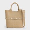 This Bobbie bucket bag in black features a convertible design that allows you to switch out its top half, which is attached to the bottom base by a zipper. It can be quickly transformed from a top-handle bag to a crossbody bag. It also comes with an additional pouch that can be used separately.