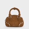 This Bobbie top handle bag in black features studded details and a curved silhouette. It also comes with a detachable shoulder strap. Carry it with a sleek tailored outfit to look sleek, polished and edgy.