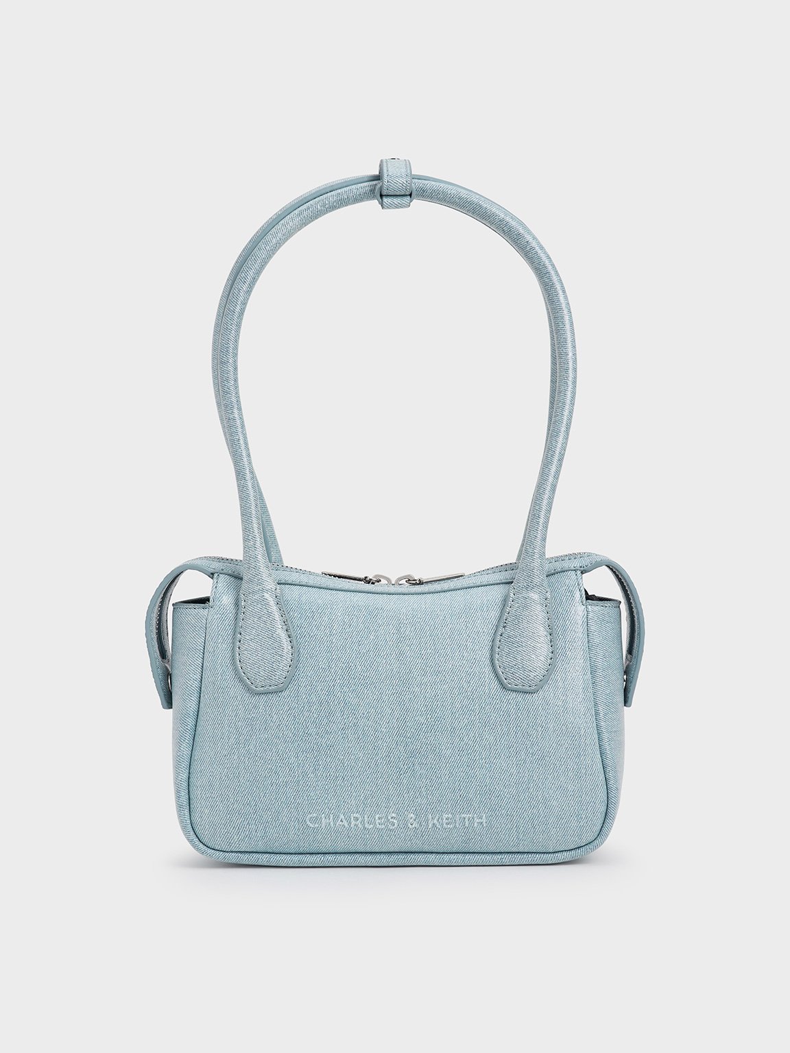 This Bosie top handle bag in vinyl denim is both cute and chic at once. Featuring two elongated handles, this sleek and sculptued lines of this piece makes the regular bag, while minimalist in design, feel fresh and modern. For easy access, this bag features a two-way zip closure. The best part? It is also water resistant, thanks to the coated vinyl finish.