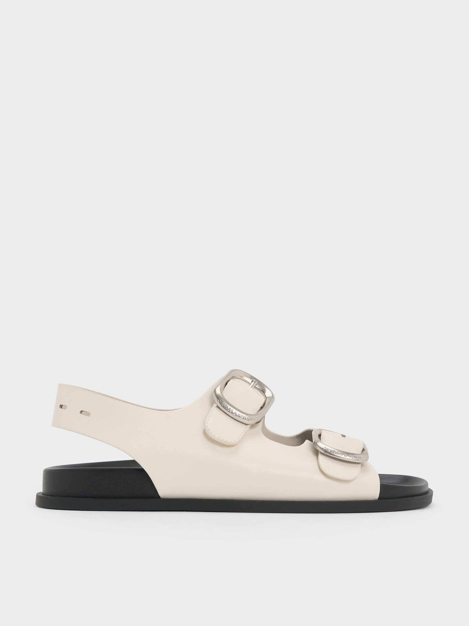 With a creamy chalk finish, these double-strap sandals are versatile shoes that will elevate all your everyday looks. Featuring shiny oversized buckles and a slingback design, they offer a secure fit and are comfortable enough for all-day wear.