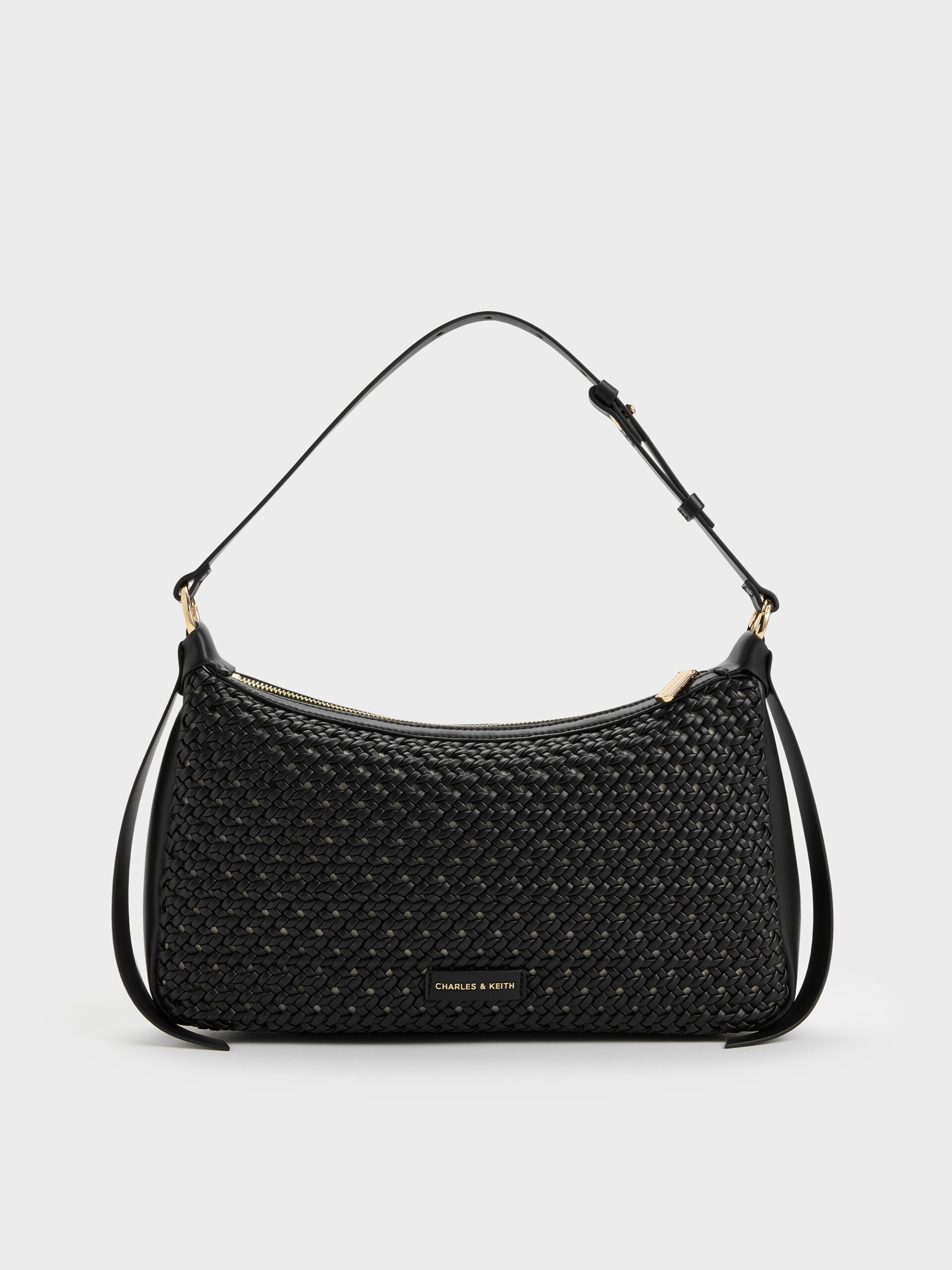 This Calla shoulder bag in black features a distinctive woven-net construction, a softly structured silhouette, a top-zip closure, an adjustable shoulder strap, a removable pouch and a roomy interior with ample space to hold your daily essentials. Carry it to add a striking element to your dressy warm-weather outfits.