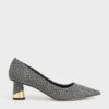 Give your feet a modern makeover in this black-and-white textured tweed pumps. Featuring a covered pointed toe and metallic sculptural heel, these pumps are the epitome of classy sophistication. Bonus points for the ease of wear, just slip them on and off you go. Style tip: dress them up with an animal-print puff-sleeved top and paperback pants for a stunning workwear ensemble.