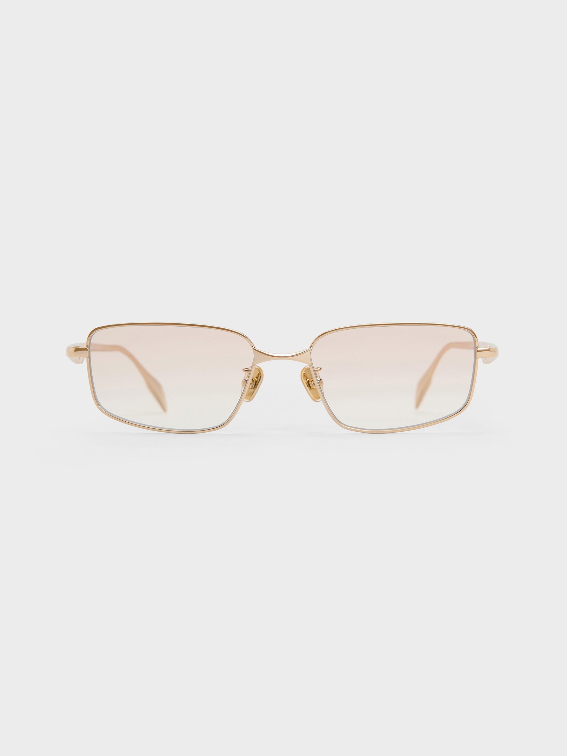 These Celestia sunglasses in light gold feature rectangular tinted lenses and shiny gold-tone metal rims. On the sides of the temples, they also feature small crystal accents for an added hint of shine. Let them add a glamorous touch to your casual outfits.