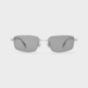 These Celestia sunglasses in noir feature rectangular tinted lenses and classic metal rims. They also feature small crystal accents on the sides of the temples for added sparkle. Let them put a stylish finishing touch on an all-black ensemble.