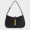 This Cesia shoulder bag in red features a distinctive metallic accent, curved corners and a single adjustable handle. Exuding modern elegance, it will refine and elevate both workplace and evening edits.