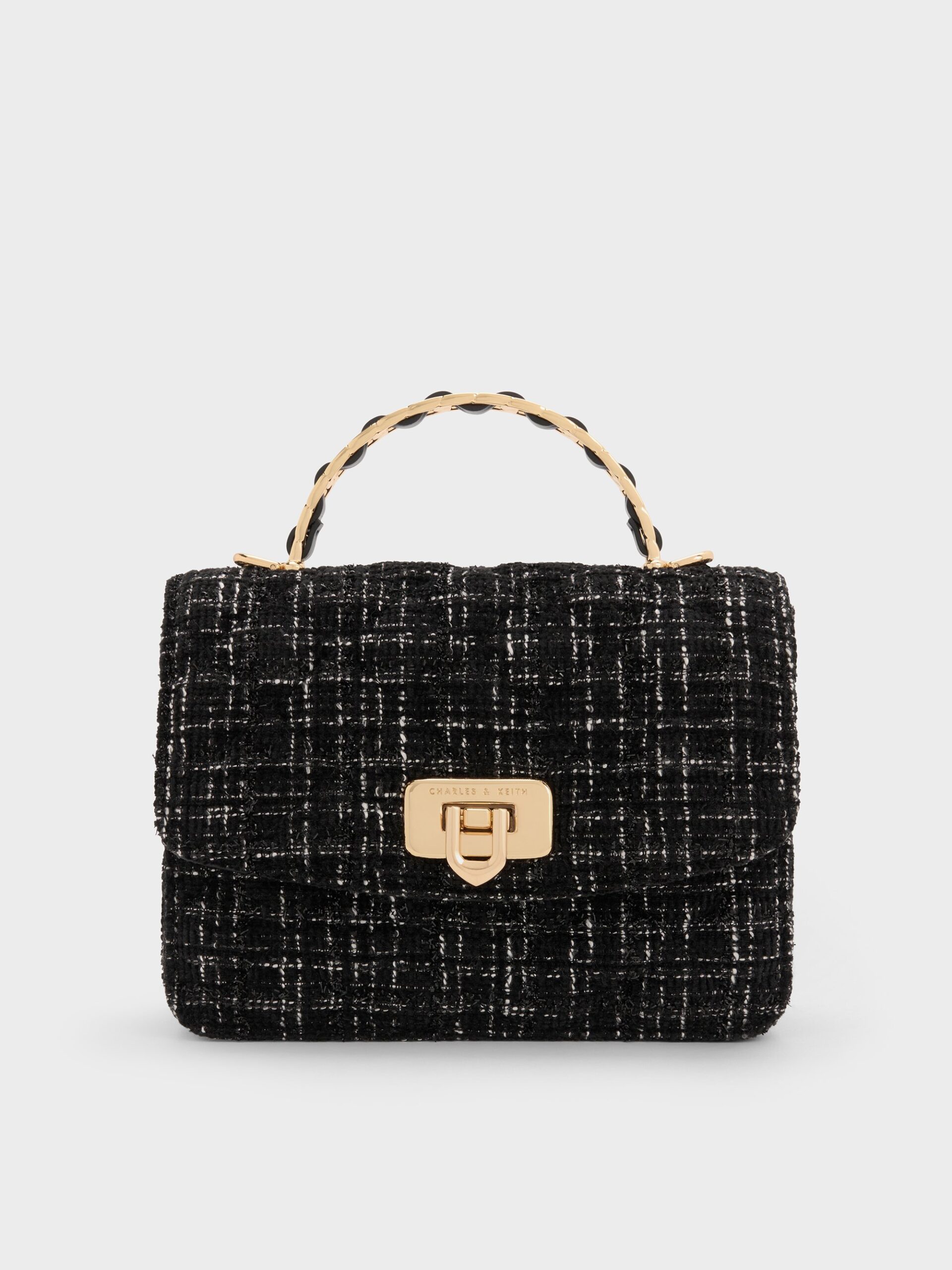 This Cressida top handle bag in black is made with tweed and features a quilted finish and a braided metallic handle. Let it ground tailored co-ords for an ensemble that feels composed and modern, perfect for both formal meetings and post-work engagements.