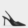 Classic black heels just got even better with a croc-effect finish that will add tasteful tactility to any look. Complete with adjustable slingback straps and sleek stiletto heels, these pumps will have you looking all ready and put together the moment you put them on.