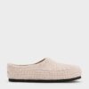 These mules in chalk feature crochet uppers, flat soles and rounded toes. Wear them with wide-legged trousers and a fitted sweater for a cosy fall-winter look that looks refined and feels comfortable.