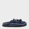 These flat mules in blue feature two-tone crochet uppers with contrasting blue suede trims, blue bows embellished with crochet flowers, covered round toes and an open-back design. They will complement your weekend and vacation outfits with ease.