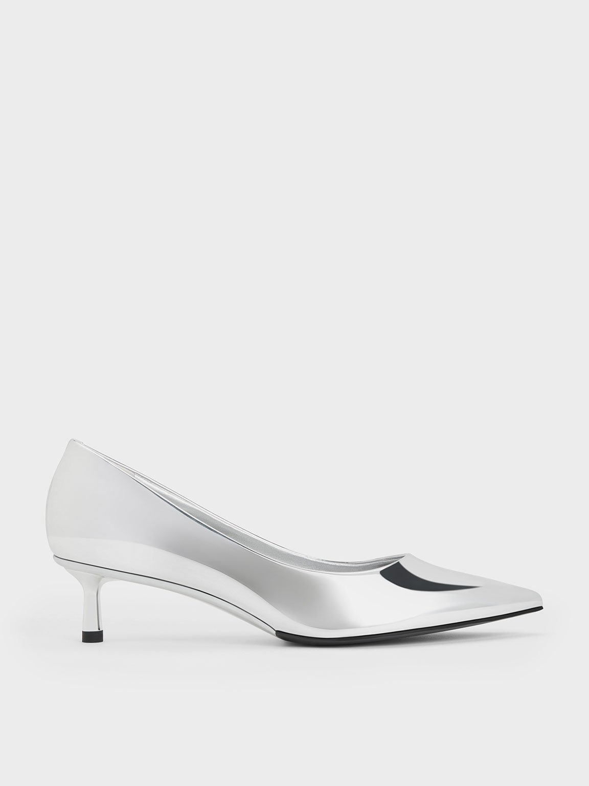 This item is part of our Online Exclusive selection, which consists of unique colourways and designs that are only available for purchase at CHARLESKEITH.COM.For shoes that are undeniably striking yet perfect for everyday wear, these kitten heel pumps check all the boxes. Featuring sleek pointed toes and a high-shine silver finish, they exude sophistication while still being versatile enough to be dressed up or down. Propped up on modest kitten heels, these pumps will add lift without compromising walkability