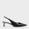Perfect for date nights, the office and countless other occasions, you can count on these pumps for timeless style. Featuring a high-shine black patent finish and sleek pointed toes, they will accentuate and flatter the feet while going well with almost any outfit. With slingback straps you can adjust to your desired fit and kitten heels that subtly boost height, these pumps are a trusty wardrobe staple.