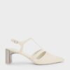 The crowning glory of these pumps feature sleek double T-bar straps that are reminiscent of gladiator styles. Their sleek pointed-toe silhouette will give anyone the illusion of longer legs, while the chalk colourway ensures endless versatility. Style them with pants and dresses alike; keep your hemlines short to really show them off.