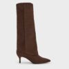 These Darian boots in black feature lace-up fronts, buckle straps, rounded toes and form-fitting shafts. Pair them with flowing skirts to create an edgy utilitarian look that is also undeniably feminine.