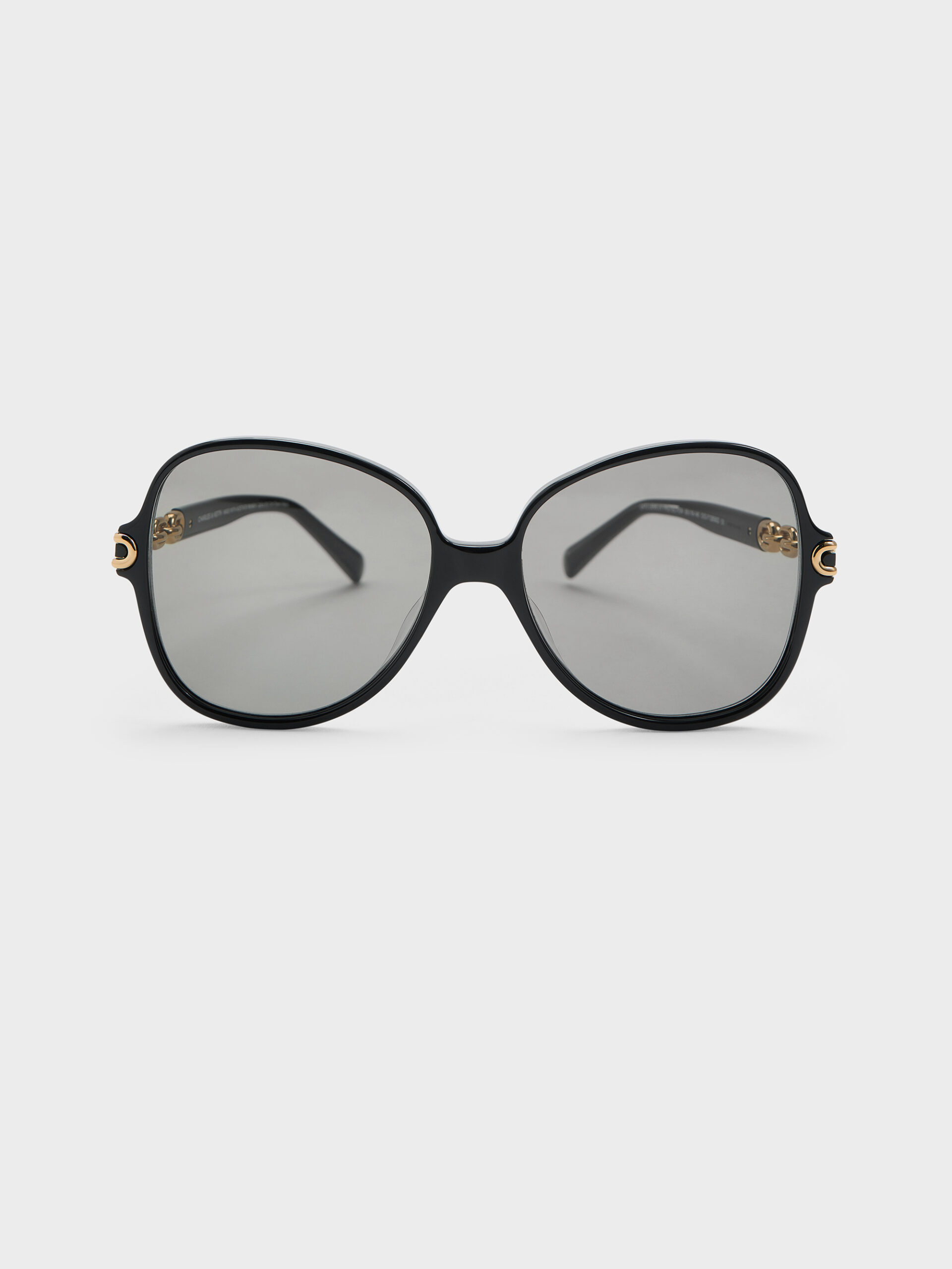 From the oversized butterfly frames to the gold-tone chain-link temples, these Delaney sunglasses in black are perfect for those who are looking to add a dose of glamour and flair to their everyday looks.