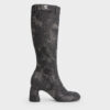 These denim biker boots are set to become a pair you will wear on repeat all fall and winter. These feature a washed denim effect offers maximum visual impact with minimal effort, while the dark grey hue keeps thing understated and edgy. In line with the cool biker boot aesthetic, the belted design is accented with our logo etched on a button-inspired detail, adding the perfect finishing touch.