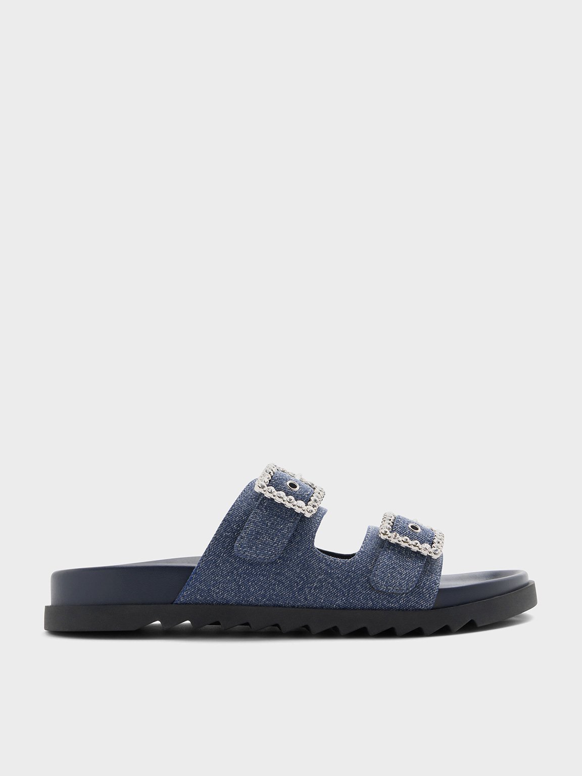 Complete your full-denim look with these sandals. Gem-embellished buckles look striking against the dark-wash finish — this pair will be a truly distinctive addition to your hot-weather wardrobe. Fitted with cushioned footbeds, they will also be comfortable enough for all-day outings.