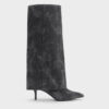 Biker boots are one of the biggest shoe trends of the season — in dark-grey denim, this iconic style looks even edgier. The washed denim finish gives it a distinctive appearance that will certainly set you apart from the crowd, while still being versatile enough to match with most outfits. These boots also come with full-length side zips that make them easy to put on and take off.