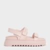Add a soft, girlish touch of colour to your summer looks with these flatform sandals. Featuring a classic, minimalist double-strap design and a pretty pink finish, they will match well with most summer outfits. The thick ridged soles are sturdy, trendy and comfortable.
