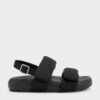 These slingback sandals in black feature a double-strap construction, slingback straps and open round toes. Slip them on with jersey separates for a composed take on casual dressing that is both comfortable and thoughtfully styled.This product contains recycled material.