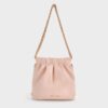 This Duo backpack in butter yellow features a quilted design, a secure magnetic closure and braided chain handles. It comes with detachable shoulder straps that allow you to use it as either a backpack or a shoulder bag.