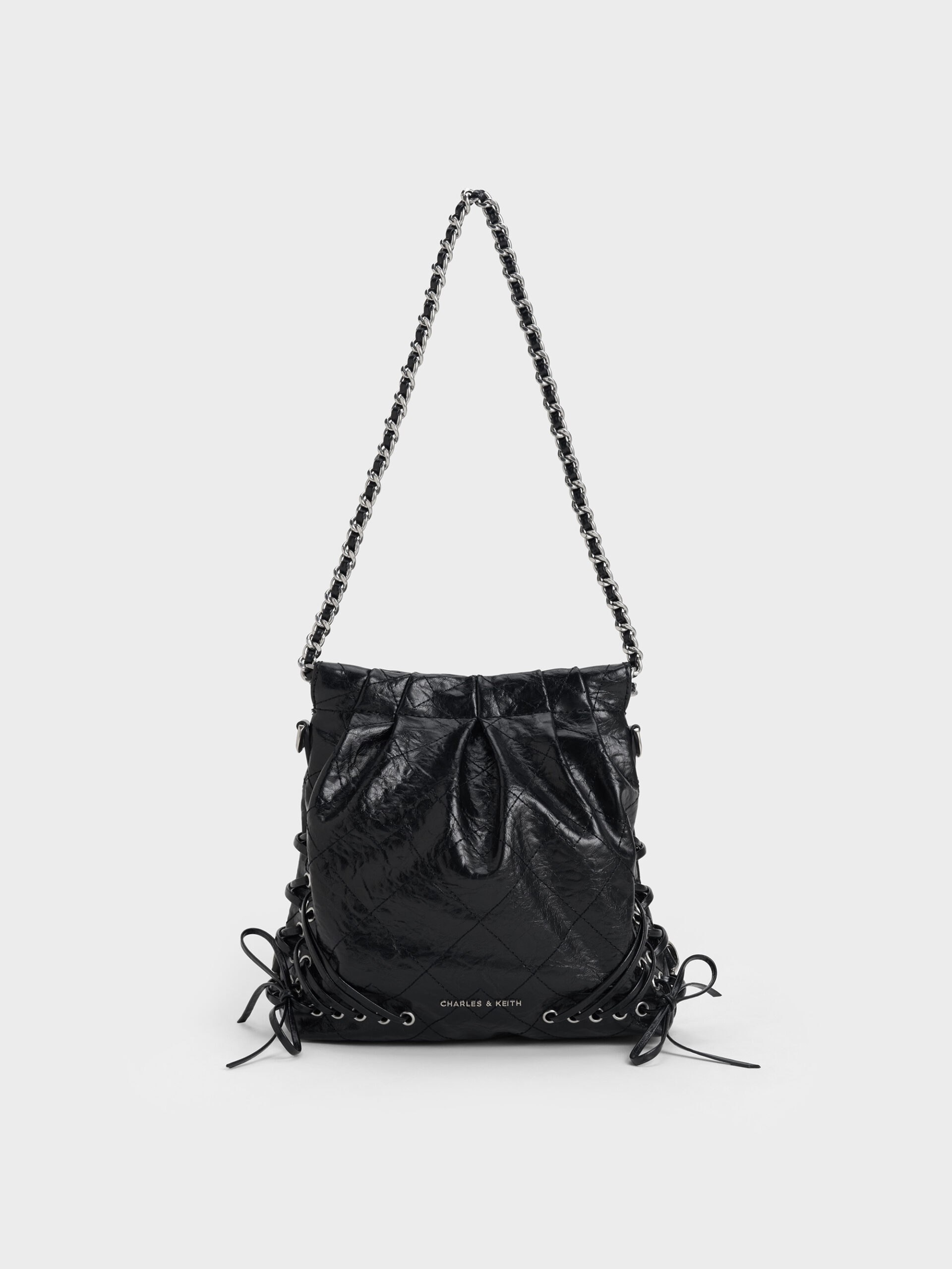 The versatile Duo two-way backpack returns with an edgy twist — grommet lace-up details lend a cool, grunge-inspired aesthetic to the classic design. In timeless black, it will effortlessly complement any outfit for a consistently chic look.