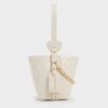 This Duo bucket bag in soft pink features a quilted finish, a chain embellishment, a magnetic closure, a detachable card holder and a top-handle strap that is anchored by a heart-shaped detail at the side. Use it to polish up smart workplace looks and softly tailored layers.