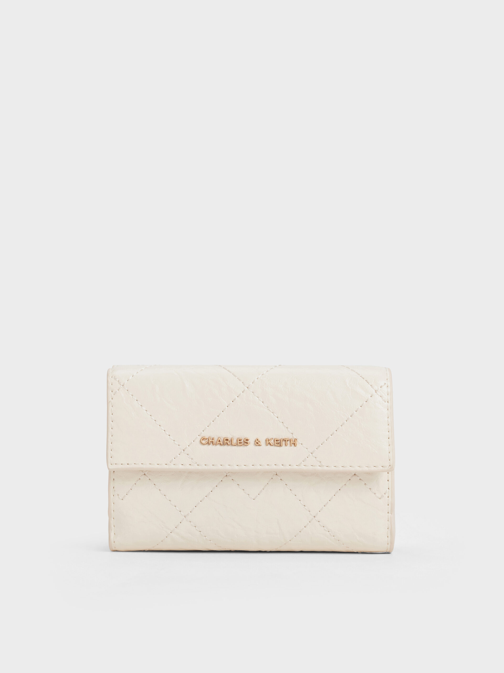 This Duo wallet in cream features a quilted design, a snap-button closure and a compact rectangular silhouette. It will slot right into your favourite work tote and also fit comfortably in the palm of your hand.
