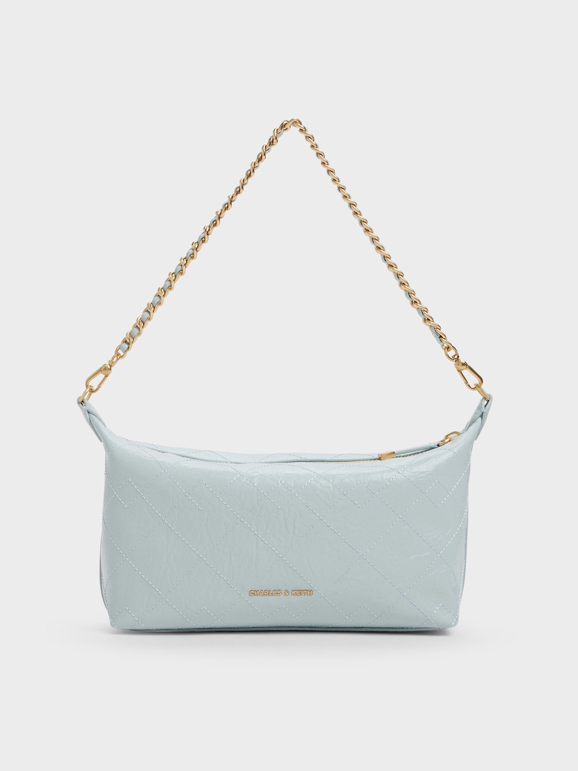 This Duo shoulder bag in sea salt blue features a distinctive quilted finish, a top-zip closure and a detachable chain strap. Let it complete your casual daytime outfits with a lovely pastel hue.