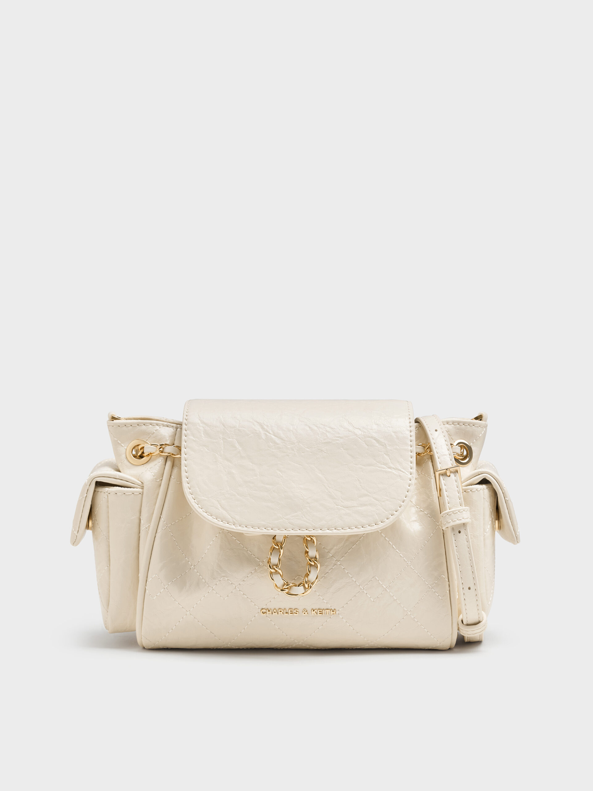 The two-way Duo backpack is as functional as it is stylish. With handy side pockets and a roomy main compartment, it can now easily hold your everyday essentials. The gold-tone braided-chain straps add a hint of shine that creates a striking contrast with the soft cream finish.